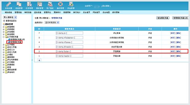 • 首先獲取在線客服安裝代碼,登陸帝國cms后臺,進入模板管理》公共模板變量》管理模板變量, 找到footer模板,點擊“修改”,將在線客服代碼復制粘貼到編輯框中的合適位置,然后點擊提交。